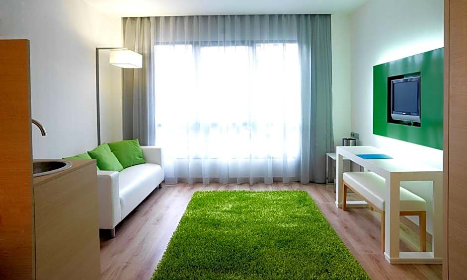 Apartment is 334 square feet and includes either a double bed 131-150 width or 2 single beds 80-130 width plus extra beds on demand.